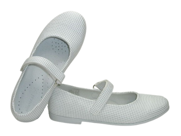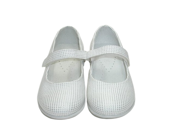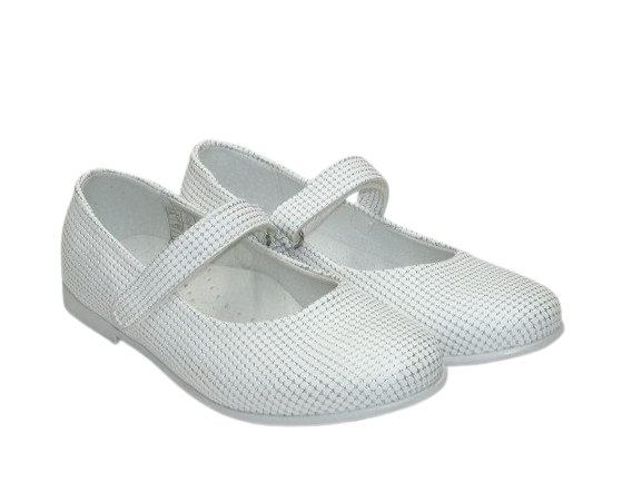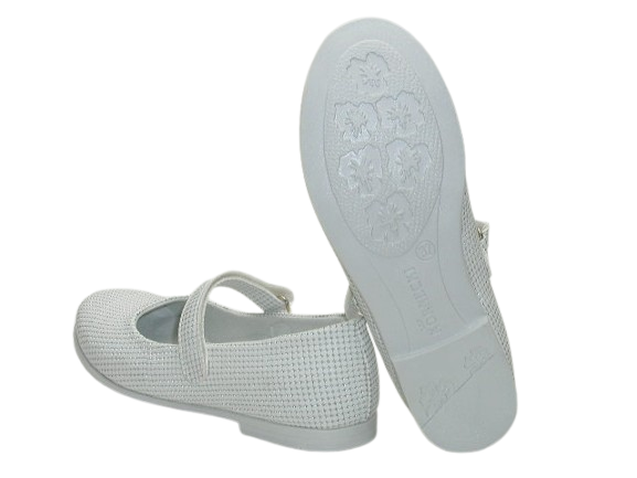 Prezentujemy eleganckie, wygodne balerinki w białym kolorze w ciekawy print. Ten wzór idealnie sprawdzi się na uroczystość Pierwszej Komunii, a także na inne okazje. Wnętrze buta w całości wykonane zostało ze skóry naturalnej absorbującej wilgoć oraz nieprzyjemne zapachy. Wkładka skórzana, profilowana, miękko podpiankowana. Projektując wzory stawiamy przede wszystkim na komfort i wygodę oraz zdrowy wpływ na stopy dzieci. Usztywniona pięta powoduje prawidłowe ustawienie stopy.