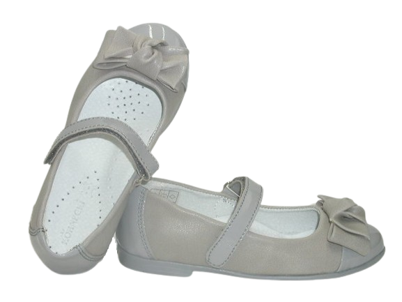 Prezentujemy balerinki z uroczą kokardką. Lakierowana wstawka dodaje elegancji. Idealnie sprawdzą się na szkolne uroczystości, święta i na co dzień. Wnętrze buta w całości wykonane zostało ze skóry naturalnej absorbującej wilgoć oraz nieprzyjemne zapachy. Wkładka skórzana, profilowana, miękko podpiankowana. Projektując wzory stawiamy przede wszystkim na komfort i wygodę oraz zdrowy wpływ na stopy dzieci. Usztywniona pięta powoduje prawidłowe ustawienie stopy.