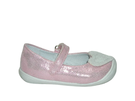 Prezentujemy śliczne balerinki dziewczęce, których przód zdobi srebrna naszywka w postaci serduszka. Idealnie sprawdzą się na różne uroczystości, święta i na co dzień. Wnętrze buta w całości wykonane zostało ze skóry naturalnej absorbującej wilgoć oraz nieprzyjemne zapachy. Wkładka skórzana, profilowana, miękko podpiankowana. Projektując wzory stawiamy przede wszystkim na komfort i wygodę oraz zdrowy wpływ na stopy dzieci. Usztywniona pięta powoduje prawidłowe ustawienie stopy. Podeszwa zachodząca na nosek chroni obuwie przed urazami mechanicznymi, co jest jego niewątpliwym atutem.