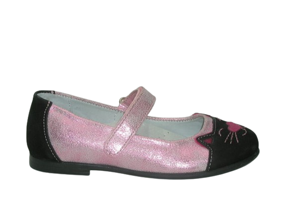 Prezentujemy balerinki dziewczęce, których przód zdobi pyszczek kotka. Idealnie sprawdzą się na różne uroczystości, święta i na co dzień. Wnętrze buta w całości wykonane zostało ze skóry naturalnej absorbującej wilgoć oraz nieprzyjemne zapachy. Wkładka skórzana, profilowana, miękko podpiankowana. Projektując wzory stawiamy przede wszystkim na komfort i wygodę oraz zdrowy wpływ na stopy dzieci. Usztywniona pięta powoduje prawidłowe ustawienie stopy.