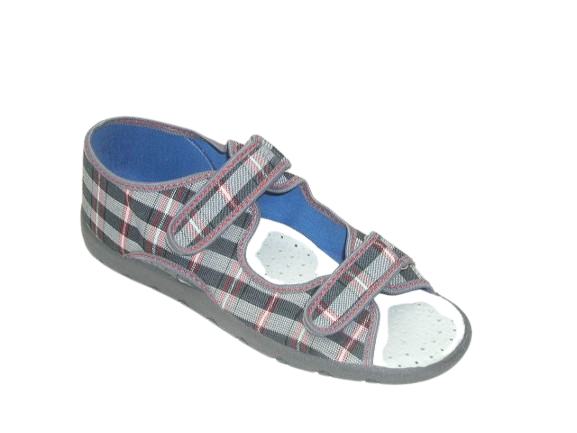 Przedstawiamy wygodne i lekkie kapcie sandałki dla chłopca zapinane na praktyczny rzep. Model jest bardzo przewiewny i prosty w zapięciu, dlatego każde dziecko z łatwością założy je w przedszkolu lub w domu.