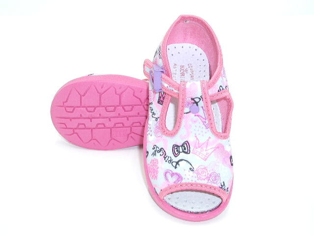 Przedstawiamy wygodne i lekkie kapcie dla dziewczynki regulowane na zapinkę z przewiewnym przodem. Model idealny nie tylko do chodzenia w domu, ale również jako obuwie do przedszkola oraz żłobka.