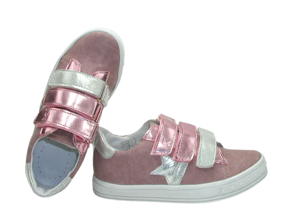 Przedstawiamy urocze półbuty wiosenne dla dziewczynki. Bok zdobi błyszcząca gwiazdka. Praktyczne regulowane zapięcie na trzy rzepy ułatwia zakładanie i zdejmowanie. Wnętrze buta w całości wykonane zostało ze skóry naturalnej absorbującej wilgoć oraz nieprzyjemne zapachy. Wkładka skórzana, profilowana, miękko podpiankowana. Usztywniony zapiętek pomaga stabilizować chód dziecka. Projektując wzory stawiamy przede wszystkim na komfort i wygodę oraz zdrowy wpływ na stopy dzieci.