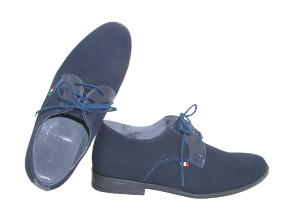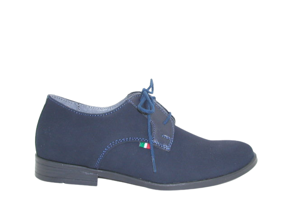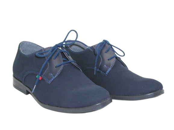 Prezentujemy eleganckie buty wizytowe chłopięce o klasycznym fasonie. Model sprawdzi się na wiele okazji tj. Komunia Święta, uroczystości szkolne oraz rodzinne. Buty wewnątrz wyściełane skórą naturalną dla komfortu użytkowania, z zewnątrz pokryte eko zamszem.