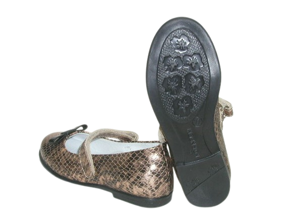 Prezentujemy balerinki dziewczęce wykonane w całości ze skóry naturalnej w ciekawy print. Wnętrze buta wykonane zostało ze skóry naturalnej absorbującej wilgoć oraz nieprzyjemne zapachy. Wkładka skórzana, profilowana, miękko podpiankowana. Projektując wzory stawiamy przede wszystkim na komfort i wygodę oraz zdrowy wpływ na stopy dzieci. Usztywniona pięta powoduje prawidłowe ustawienie stopy.