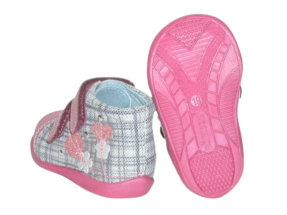 Prezentujemy śliczne trzewiki dziewczęce zaprojektowane z myślą o dzieciach, które zaczynają stawiać pierwsze kroki. Buty w całości wykonane zostały ze skóry naturalnej absorbującej wilgoć oraz nieprzyjemne zapachy. Wkładka skórzana, profilowana, miękko podpiankowana. Wysoka cholewka w połączeniu z usztywnionym zapiętkiem pomaga stabilizować chód dziecka. Podwyższony, szeroki czubek ułatwia swobodne ułożenie palców w bucie. Projektując wzory stawiamy przede wszystkim na komfort i wygodę oraz zdrowy wpływ na stopy dzieci.