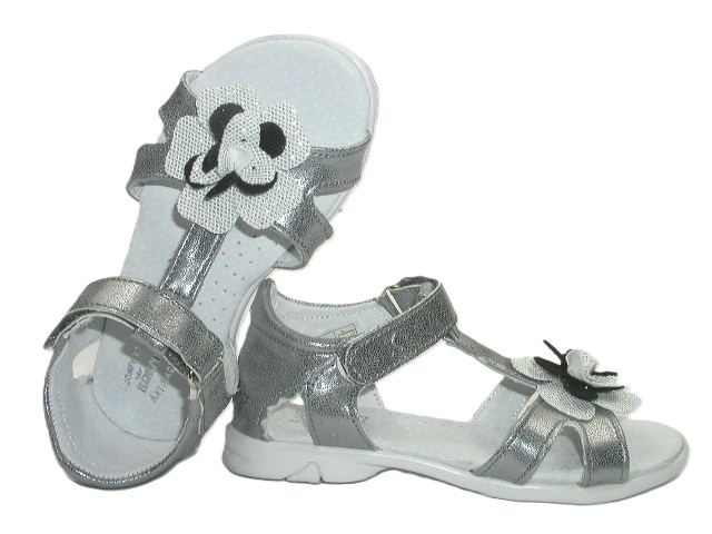 Prezentujemy sandałki dla dziewczynek ozdobione kwiatem. Wnętrze buta wykonane w całości z wysokiej jakości skóry naturalnej, dzięki której stopy mają zapewnioną zdrową wentylację oraz nie powoduje otarć. Sandałki dobrze prezentują się na stopie. Zabudowana pięta i usztywnione zapiętki wspierają prawidłową stabilizację. Model sprawdzi się na co dzień jak i od święta.