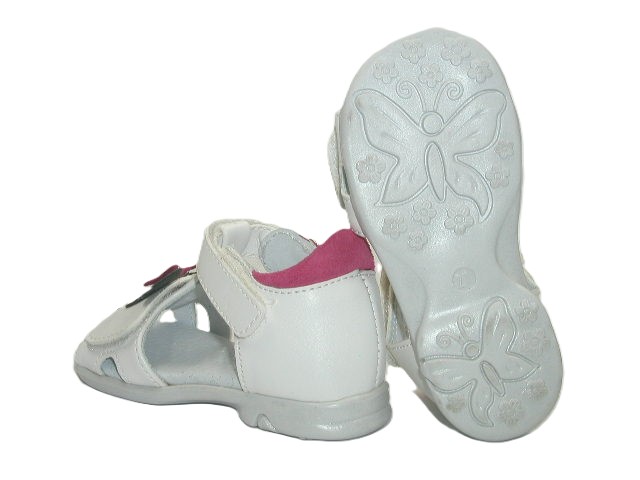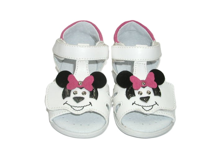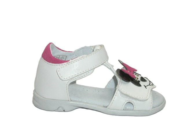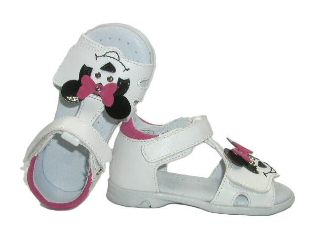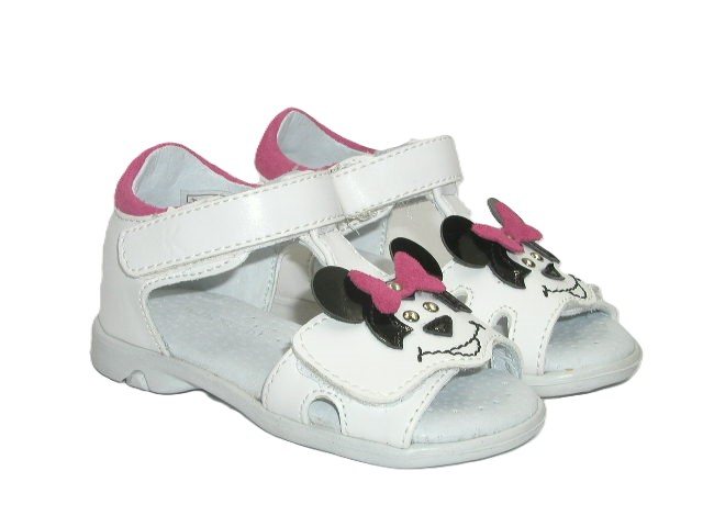 Prezentujemy śliczne sandałki dla dziewczynek ozdobione aplikacją w postaci myszki. Rzep w okolicy palców pozwoli dopasować model do tęgości stopy. Wnętrze buta wykonane w całości z wysokiej jakości skóry naturalnej, dzięki której delikatne stópki mają zapewnioną zdrową wentylację oraz nie powoduje otarć. Sandałki dobrze prezentują się na stopie. Zabudowana pięta i odpowiednio usztywnione zapiętki wspierają prawidłową stabilizację. Model sprawdzi się na co dzień jak i od święta.