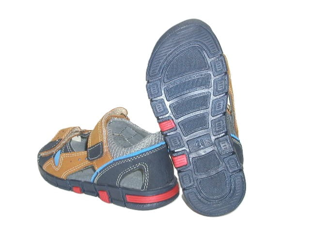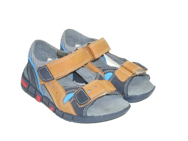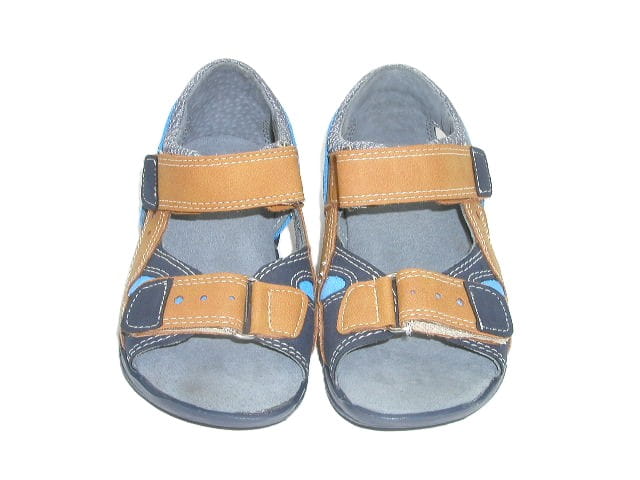 Prezentujemy sandałki dla chłopca. Wnętrze buta wykonane w całości z wysokiej jakości skóry naturalnej, dzięki której delikatne stópki mają zapewnioną zdrową wentylację oraz nie powoduje otarć. Sandałki dobrze prezentują się na stopie. Zabudowana częściowo pięta wspiera prawidłową stabilizację dając dodatkową wentylacje.