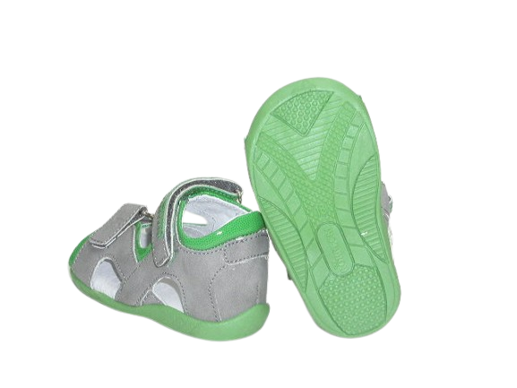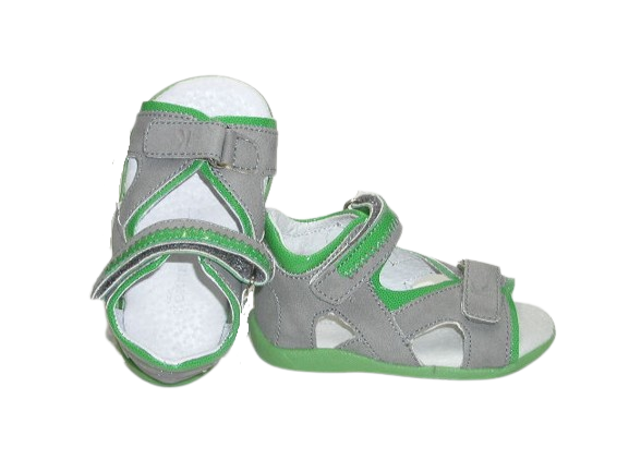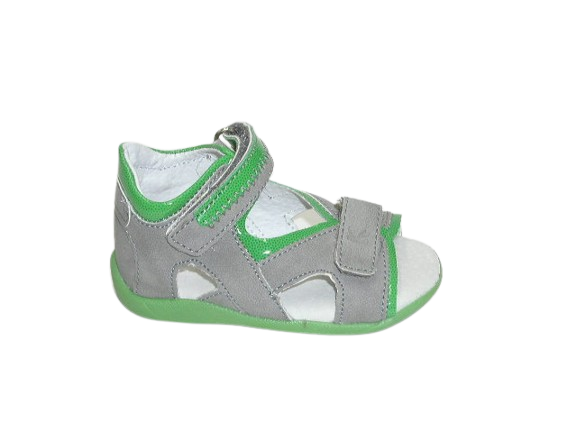 Prezentujemy sandałki chłopięce z regulacją na dwa rzepy. Wnętrze buta wykonane zostało z wysokiej jakości skóry naturalnej, dzięki której delikatne stópki mają zapewnioną zdrową wentylację oraz nie powoduje otarć. Sandałki dobrze prezentują się na stopie. Zabudowana pięta i odpowiednio usztywnione zapiętki wspierają prawidłową stabilizację.