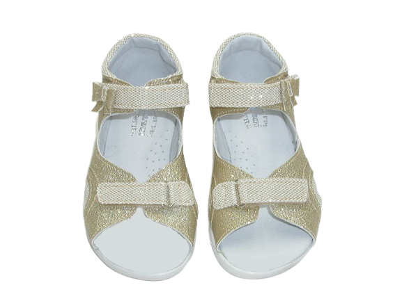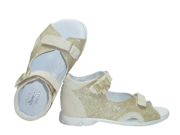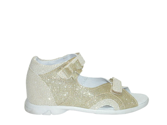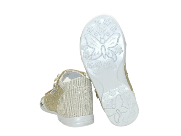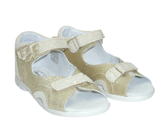 Prezentujemy śliczne sandałki dla dziewczynek ozdobione brokatem. Wnętrze buta wykonane w całości z wysokiej jakości skóry naturalnej, dzięki której stopy mają zapewnioną zdrową wentylację oraz nie powoduje otarć. Sandałki dobrze prezentują się na stopie, a regulacja na dwa rzepy pomoże dopasować buty do tęgości stopy. Zabudowana pięta i odpowiednio usztywnione zapiętki wspierają prawidłową stabilizację. Model sprawdzi się na co dzień jak i od święta.