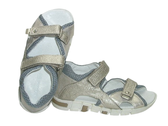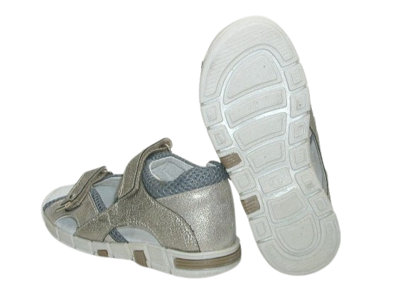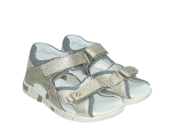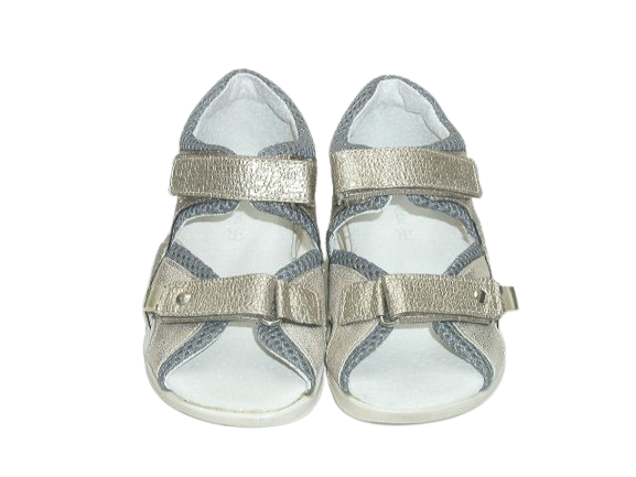 Prezentujemy sandałki dla dziewczynek. Wnętrze buta wykonane w całości z wysokiej jakości skóry naturalnej, dzięki której stopy mają zapewnioną zdrową wentylację oraz nie powoduje otarć. Sandałki dobrze prezentują się na stopie, a regulacja na dwa rzepy pomoże dopasować buty do tęgości stopy. Zabudowana pięta i odpowiednio usztywnione zapiętki wspierają prawidłową stabilizację. Model sprawdzi się na co dzień jak i od święta.