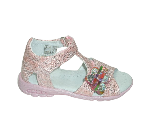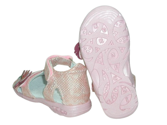 Prezentujemy sandałki dla dziewczynek. Rzep w okolicy palców pozwoli dopasować model do tęgości stopy. Wnętrze buta wykonane w całości z wysokiej jakości skóry naturalnej, dzięki której delikatne stópki mają zapewnioną zdrową wentylację oraz nie powoduje otarć. Sandałki dobrze prezentują się na stopie. Częściowo zabudowana pięta wspiera stabilizację stopy. Model sprawdzi się na co dzień jak i od święta.