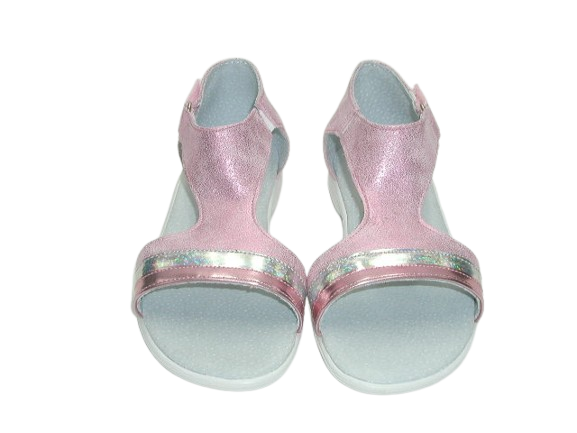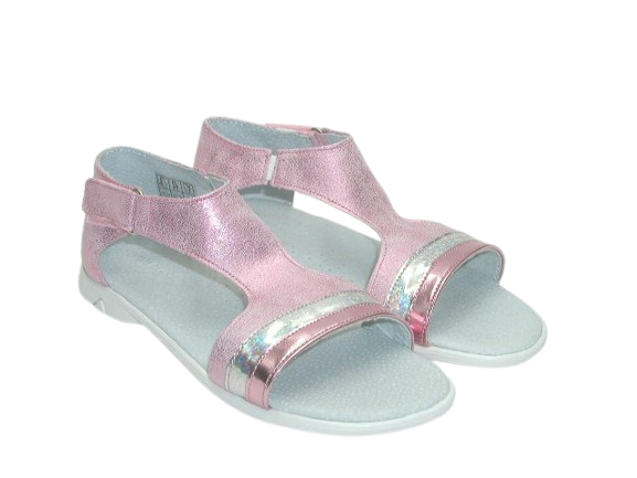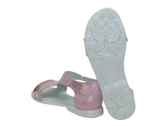 Prezentujemy sandałki dla dziewczynek z brokatowym akcentem, który dodaje niepowtarzalnego szyku. Wnętrze buta wykonane w całości z wysokiej jakości skóry naturalnej, dzięki której stopy mają zapewnioną zdrową wentylację oraz nie powoduje otarć. Sandałki dobrze prezentują się na stopie. Zabudowana pięta i odpowiednio usztywnione zapiętki wspierają prawidłową stabilizację. Model sprawdzi się na co dzień jak i od święta.