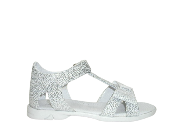 Prezentujemy śliczne sandałki dla dziewczynek ozdobione brokatową kokardką. Wnętrze buta wykonane w całości z wysokiej jakości skóry naturalnej, dzięki której stopy mają zapewnioną zdrową wentylację oraz nie powoduje otarć. Sandałki dobrze prezentują się na stopie. Zabudowana pięta i usztywnione zapiętki wspierają prawidłową stabilizację. Model sprawdzi się na co dzień jak i od święta.