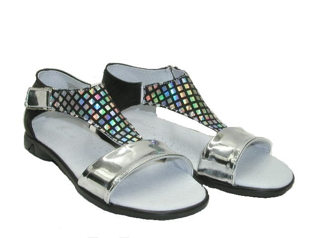 Prezentujemy sandałki dla dziewczynek z holograficznym akcentem, który dodaje niepowtarzalnego szyku. Wnętrze buta wykonane w całości z wysokiej jakości skóry naturalnej, dzięki której stopy mają zapewnioną zdrową wentylację oraz nie powoduje otarć. Sandałki dobrze prezentują się na stopie. Zabudowana pięta i odpowiednio usztywnione zapiętki wspierają prawidłową stabilizację. Model sprawdzi się na co dzień jak i od święta.