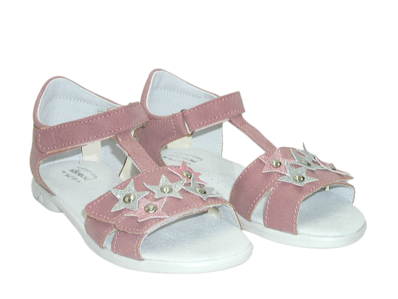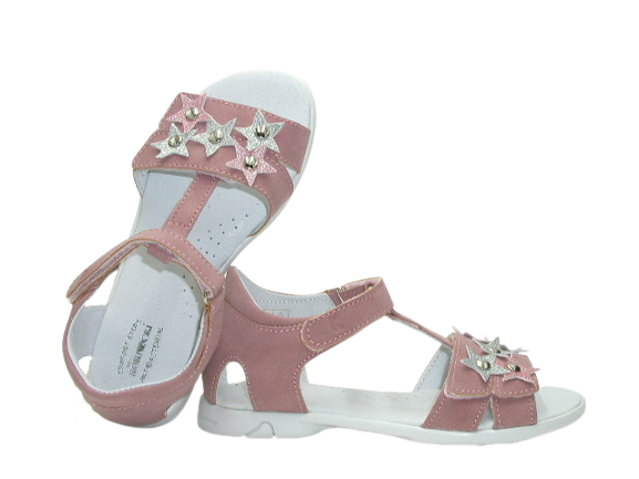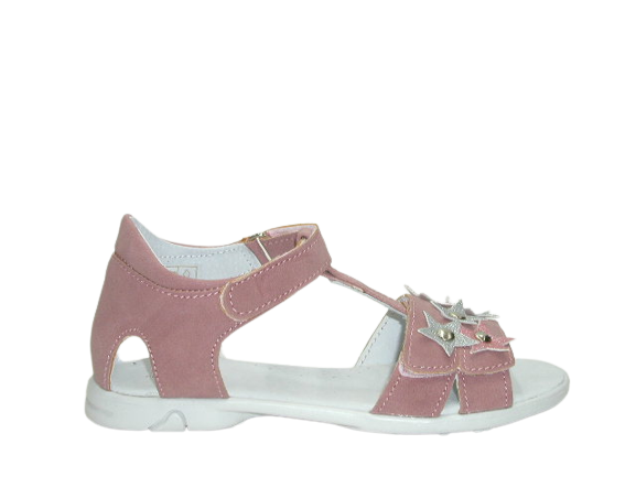 Prezentujemy śliczne sandałki dla dziewczynek ozdobione uroczymi gwiazdkami. Rzep w okolicy palców pozwoli dopasować model do tęgości stopy. Wnętrze buta wykonane w całości z wysokiej jakości skóry naturalnej, dzięki której stopy mają zapewnioną zdrową wentylację oraz nie powoduje otarć. Sandałki dobrze prezentują się na stopie. Zabudowana częściowo pięta wspiera prawidłową stabilizację dając dodatkową wentylacje. Projektując wzory stawiamy przede wszystkim na komfort i wygodę oraz zdrowy wpływ na stopy dzieci. Model sprawdzi się na co dzień jak i od święta.