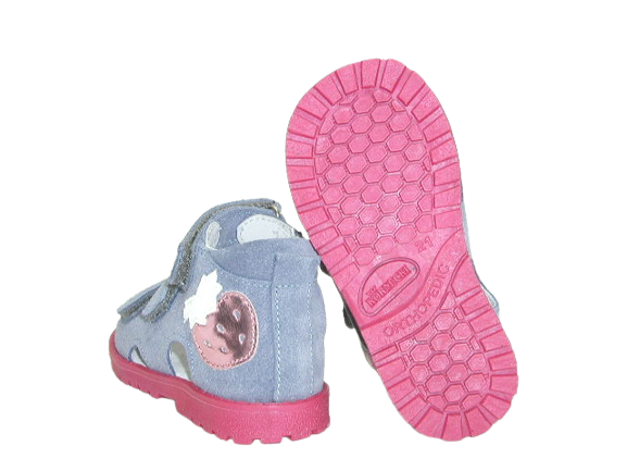 Prezentujemy obuwie profilaktyczno dla dzieci zaprojektowane w celu profilaktyki deformacji stóp. Buty wspomagają leczenie i rehabilitacje takich wad jak: koślawość stóp, szpatowość stóp, płaskostopie podłużne, płaskostopie poprzeczne, szponowatość palców, paluch koślawy, stopy płasko koślawe. Sandałki sprawdzą się jako kapcie w domu, przedszkolu jaki i na zewnątrz. Dzięki konstrukcji obuwia, but można dopasować do stopy dziecka, a w razie potrzeby istnieje możliwość wklejenia innej wkładki ortopedycznej.
