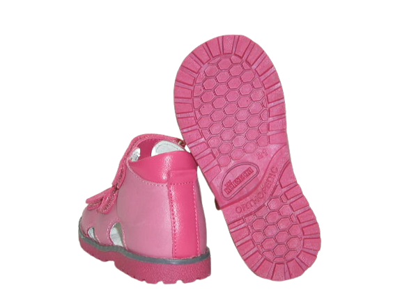 Prezentujemy obuwie profilaktyczno dla dzieci zaprojektowane w celu profilaktyki deformacji stóp. Buty wspomagają leczenie i rehabilitacje takich wad jak: koślawość stóp, szpatowość stóp, płaskostopie podłużne, płaskostopie poprzeczne, szponowatość palców, paluch koślawy, stopy płasko koślawe. Sandałki sprawdzą się jako kapcie w domu, przedszkolu jaki i na zewnątrz. Dzięki konstrukcji obuwia, but można dopasować do stopy dziecka, a w razie potrzeby istnieje możliwość wklejenia innej wkładki ortopedycznej.