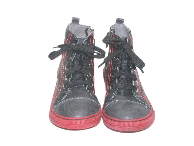 Przedstawiamy wiosenno - jesienne trzewiki chłopięce. Trzewiki są wiązane sznurówkami oraz dodatkowo wyposażone w zamek. Wnętrze buta w całości wykonane zostało ze skóry naturalnej absorbującej wilgoć oraz nieprzyjemne zapachy. Wkładka skórzana, profilowana, miękko podpiankowana. Wysoka cholewka w połączeniu z usztywnionym zapiętkiem pomaga stabilizować chód dziecka. Podeszwa zachodząca na nosek chroni obuwie przed urazami mechanicznymi, co jest jego niewątpliwym atutem. Projektując wzory stawiamy przede wszystkim na komfort i wygodę oraz zdrowy wpływ na stopy dzieci.