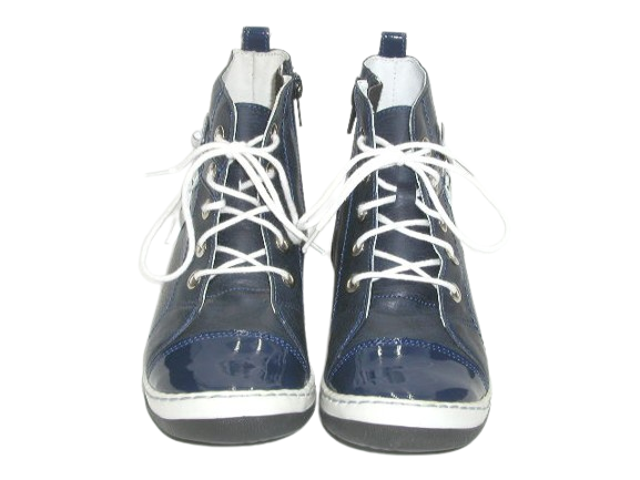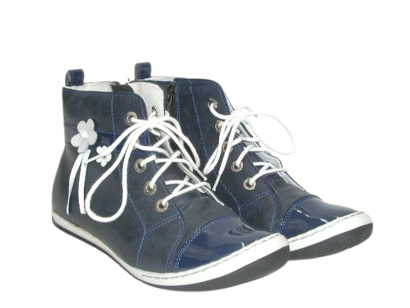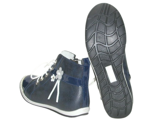 Przedstawiamy wiosenno - jesienne trzewiki dziewczęce. Buty świetnie prezentują się na nodze. Trzewiki są wiązane sznurówkami oraz dodatkowo wyposażone w zamek. Wnętrze buta w całości wykonane zostało ze skóry naturalnej absorbującej wilgoć oraz nieprzyjemne zapachy. Wkładka skórzana, profilowana, miękko podpiankowana. Wysoka cholewka w połączeniu z usztywnionym zapiętkiem pomaga stabilizować chód dziecka. Projektując wzory stawiamy przede wszystkim na komfort i wygodę oraz zdrowy wpływ na stopy dzieci.