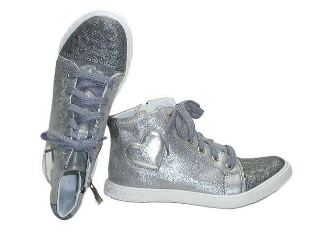 Przedstawiamy wiosenno - jesienne trzewiki dziewczęce z efektowną aplikacją z boku w postaci serca. Buty świetnie prezentują się na nodze. Trzewiki są wiązane sznurówkami oraz dodatkowo wyposażone w zamek. Wnętrze buta w całości wykonane zostało ze skóry naturalnej absorbującej wilgoć oraz nieprzyjemne zapachy. Wkładka skórzana, profilowana, miękko podpiankowana. Wysoka cholewka w połączeniu z usztywnionym zapiętkiem pomaga stabilizować chód dziecka. Projektując wzory stawiamy przede wszystkim na komfort i wygodę oraz zdrowy wpływ na stopy dzieci.