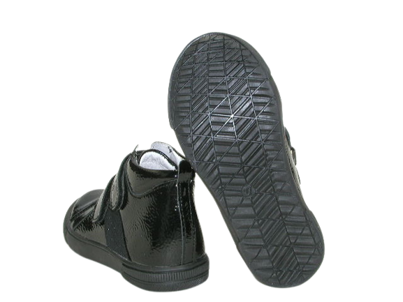 Przedstawiamy wiosenno - jesienne trzewiki dziewczęce w klasycznym czarnym kolorze. Buty świetnie prezentują się na nodze. Praktyczne regulowane zapięcie na dwa rzepy ułatwia zakładanie i zdejmowanie. Wnętrze buta w całości wykonane zostało ze skóry naturalnej absorbującej wilgoć oraz nieprzyjemne zapachy. Wkładka skórzana, profilowana, miękko podpiankowana. Wysoka cholewka w połączeniu z usztywnionym zapiętkiem pomaga stabilizować chód dziecka. Projektując wzory stawiamy przede wszystkim na komfort i wygodę oraz zdrowy wpływ na stopy dzieci.