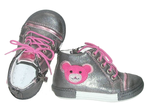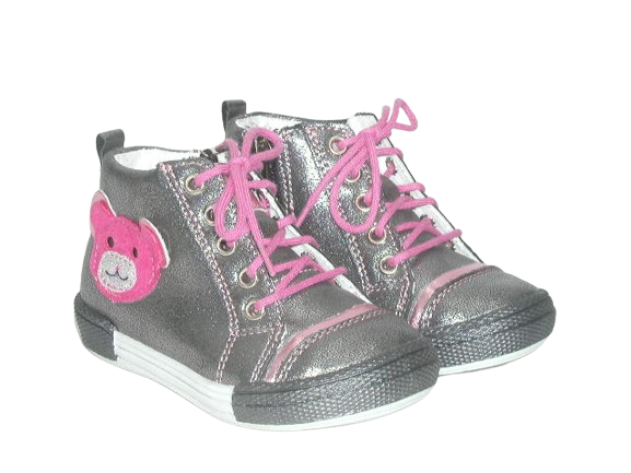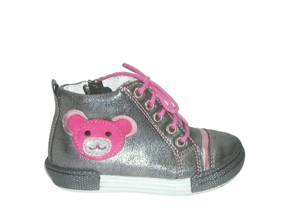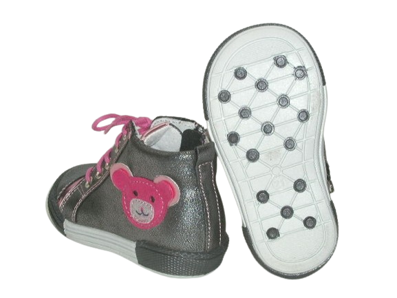 Prezentujemy wiosenno-jesienny model trzewików dziecięcych. Projektując wzory stawiamy przede wszystkim na komfort i wygodę oraz zdrowy wpływ na stopy dzieci. Buciki są wiązane sznurówkami, dzięki czemu łatwiej dopasować je można do stóp dziecka. Dodatkowo od wewnętrznej strony cholewki wzór wyposażony w zamek na całej długości. Dwie możliwości regulacji ułatwią wkładanie i zdejmowanie. Cholewkę od zewnątrz zdobi naszywka z uroczym misiem.