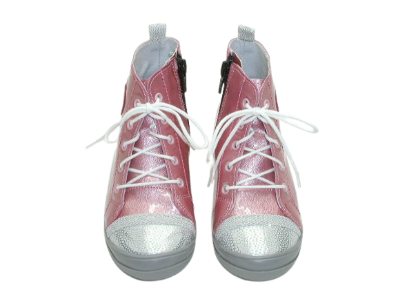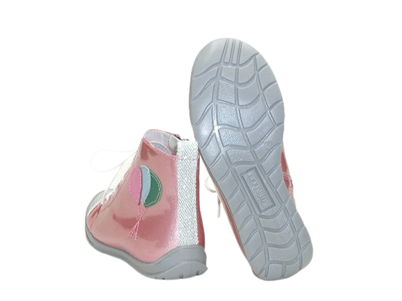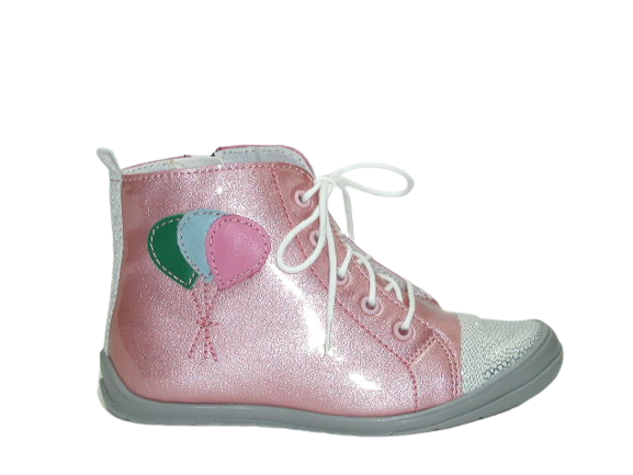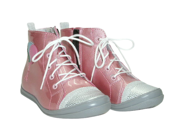 Przedstawiamy wiosenno - jesienne trzewiki dziewczęce z efektowną aplikacją z boku. Błyszcząca cholewka z uroczymi naszywki przypadnie do gustu małym modnisiom. Buty świetnie prezentują się na nodze. Trzewiki są wiązane sznurówkami oraz dodatkowo wyposażone w zamek. Wnętrze buta w całości wykonane zostało ze skóry naturalnej absorbującej wilgoć oraz nieprzyjemne zapachy. Wkładka skórzana, profilowana, miękko podpiankowana. Wysoka cholewka w połączeniu z usztywnionym zapiętkiem pomaga stabilizować chód dziecka. Projektując wzory stawiamy przede wszystkim na komfort i wygodę oraz zdrowy wpływ na stopy dzieci.