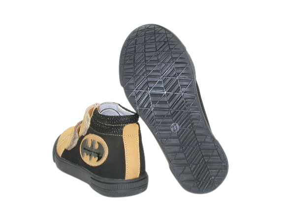 Prezentujemy wiosenno - jesienne trzewiki chłopięce inspirowane ulubieńcem chłopców i superbohaterem – Batmanem. Ten wyjątkowy model to połączenie wygody z ciekawym, niebanalnym wyglądem. Jesteśmy pewni, że przypadnie do gustu małym fanom. Regulacja na dwa rzepy ułatwi zakładanie i zdejmowanie. Wnętrze buta w całości wykonane zostało ze skóry naturalnej absorbującej wilgoć oraz nieprzyjemne zapachy. Wkładka skórzana, profilowana, miękko podpiankowana. Projektując wzory stawiamy przede wszystkim na komfort i wygodę oraz zdrowy wpływ na stopy dzieci. Usztywniona pięta powoduje prawidłowe ustawienie stopy.