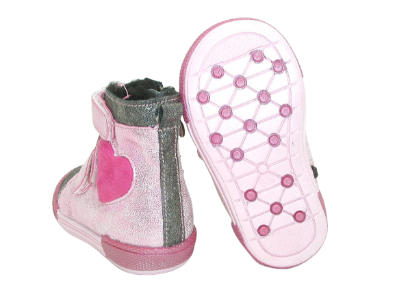 Prezentujemy zimowy model trzewików dziewczęcych. Zewnętrzną stronę cholewki zdobi urocze serduszko. Ciekawe wzornictwo spodoba się najmłodszym. Projektując wzory stawiamy przede wszystkim na komfort i wygodę oraz zdrowy wpływ na stopy dzieci. Wzór wyposażony został w trzy rzepy oraz od wewnętrznej strony w zamek na całej długości. Dwie możliwości regulacji ułatwią wkładanie, zdejmowanie.