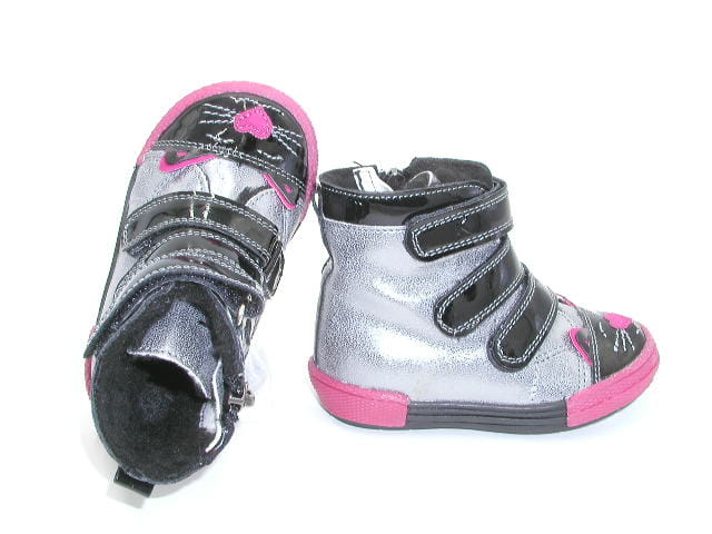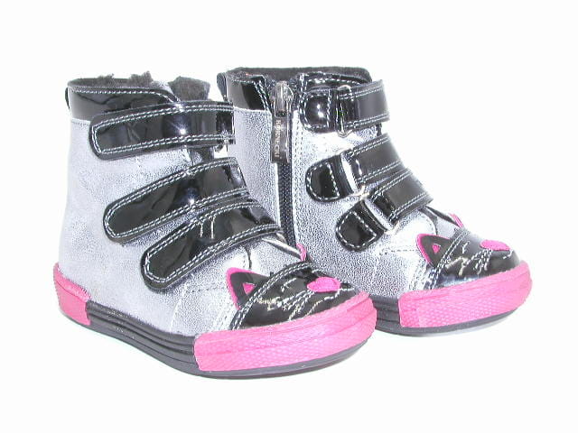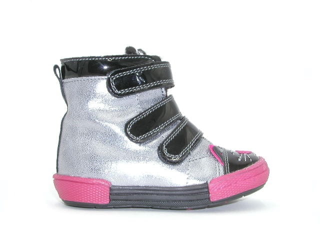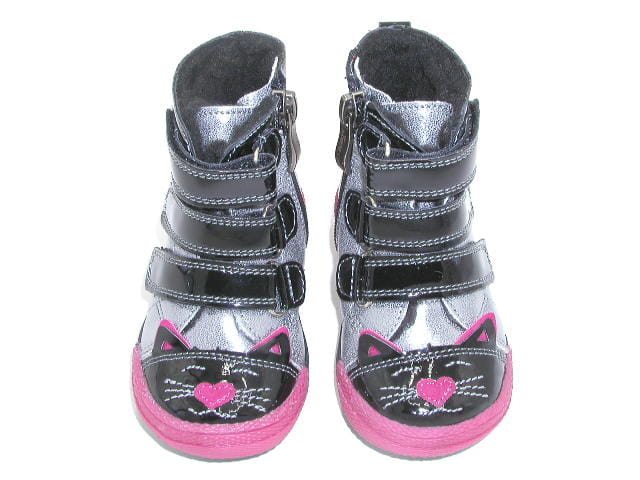 Prezentujemy zimowy model trzewików dziewczęcych. Przód zdobi urokliwy pyszczek kotka. Ciekawe wzornictwo spodoba się najmłodszym. Projektując buty stawiamy przede wszystkim na komfort i wygodę oraz zdrowy wpływ na stopy dzieci. Wzór wyposażony został w trzy rzepy, a także od wewnętrznej strony w zamek na całej długości. Dwie możliwości regulacji ułatwią wkładanie, zdejmowanie.