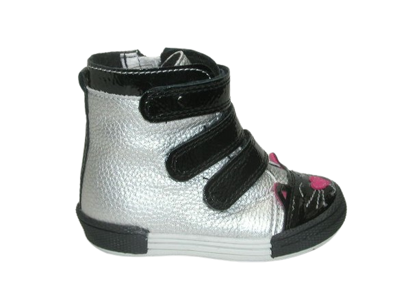 Prezentujemy zimowy model trzewików dziewczęcych. Przód zdobi urokliwy pyszczek kotka. Ciekawe wzornictwo spodoba się najmłodszym. Projektując buty stawiamy przede wszystkim na komfort i wygodę oraz zdrowy wpływ na stopy dzieci. Wzór wyposażony został w trzy rzepy, a także od wewnętrznej strony w zamek na całej długości. Dwie możliwości regulacji ułatwią wkładanie, zdejmowanie.