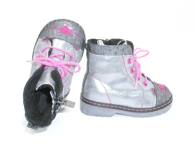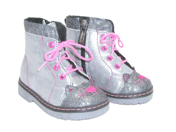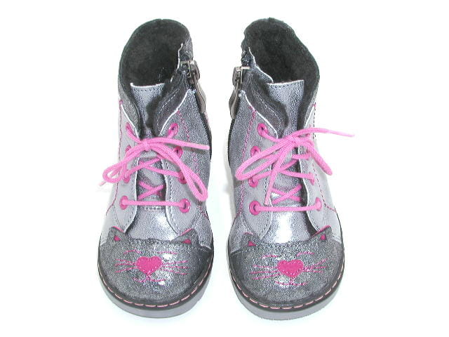 Prezentujemy zimowy model trzewików dziewczęcych typu glan. Przód buta ozdobiony uroczym kotkiem, który oczaruje każdą dziewczynkę. Projektując wzory stawiamy przede wszystkim na komfort i wygodę oraz zdrowy wpływ na stopy dzieci. Traperki są wiązane sznurówkami, dzięki czemu łatwiej dopasować je można do stóp dziecka. Dodatkowo od wewnętrznej strony wzór wyposażony w zamek na całej długości. Dwie możliwości regulacji ułatwią wkładanie i zdejmowanie.