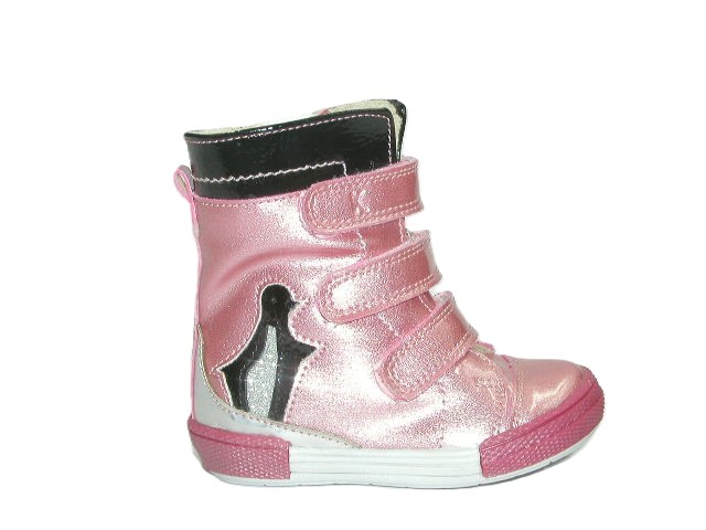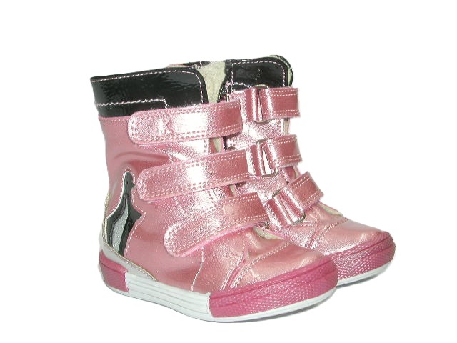 Prezentujemy zimowy model trzewików dziewczęcych. Ciekawe wzornictwo spodoba się najmłodszym. Projektując buty stawiamy przede wszystkim na komfort i wygodę oraz zdrowy wpływ na stopy dzieci. Wzór wyposażony został w trzy rzepy, a także od wewnętrznej strony w zamek na całej długości. Dwie możliwości regulacji ułatwią wkładanie, zdejmowanie.